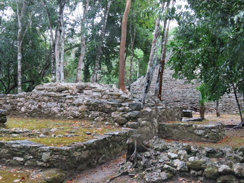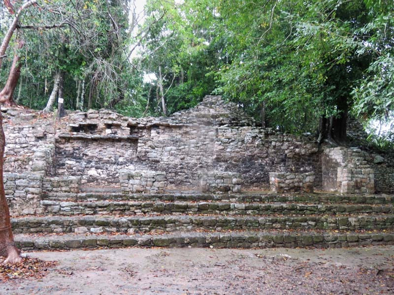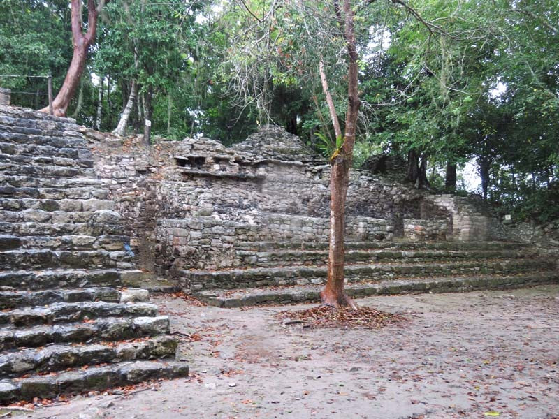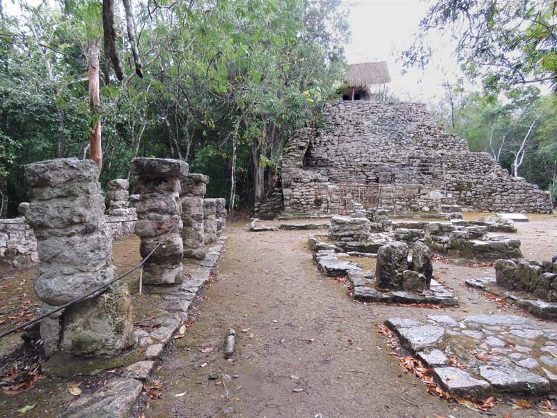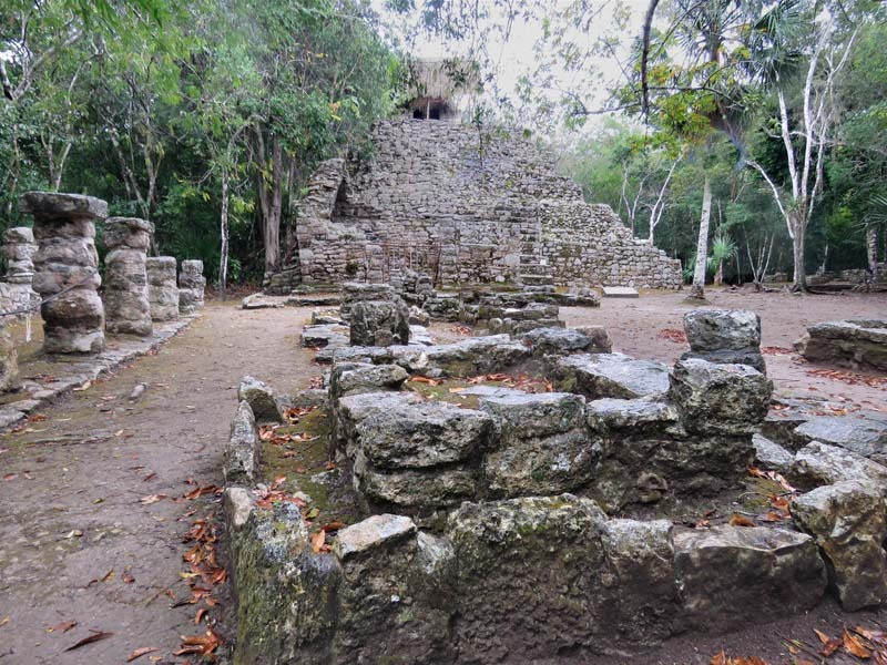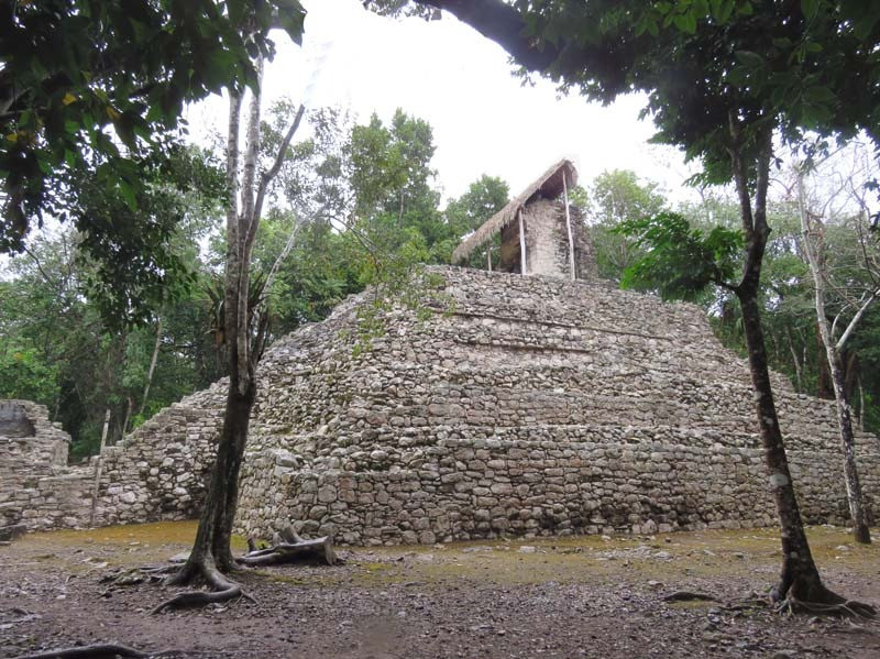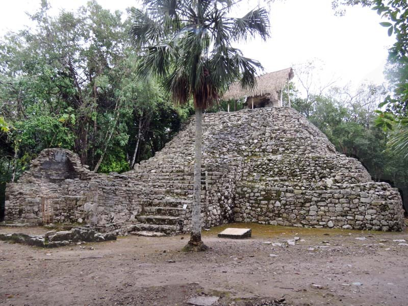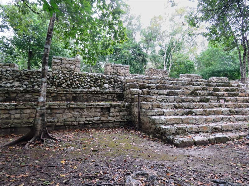 Coba is an ancient Maya city on the Yucatán Peninsula, located in the Mexican state of Quintana Roo. As part of the largest network of stone causeways of the ancient Maya world, Coba contains many engraved and sculpted stelae that document ceremonial life and important events of the Late Classic Period (AD 600–900) of Mesoamerican civilization. The ruins of Coba lie 29 miles northwest of Tulum, also in the State of Quintana Roo. Located around two lagoons, Lake Coba and Lake Macanxoc, a series of elevated stone and plaster roads radiate from the central site to various smaller sites in the area. These roads are known by the Maya as "sacbe" or white road. Coba contains a group of large temple pyramids known as the Nohoch Mul, the tallest, Ixmoja, is 138 ft. in height.