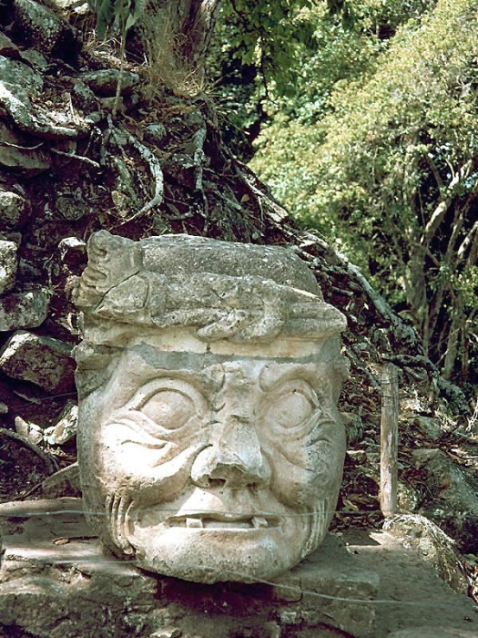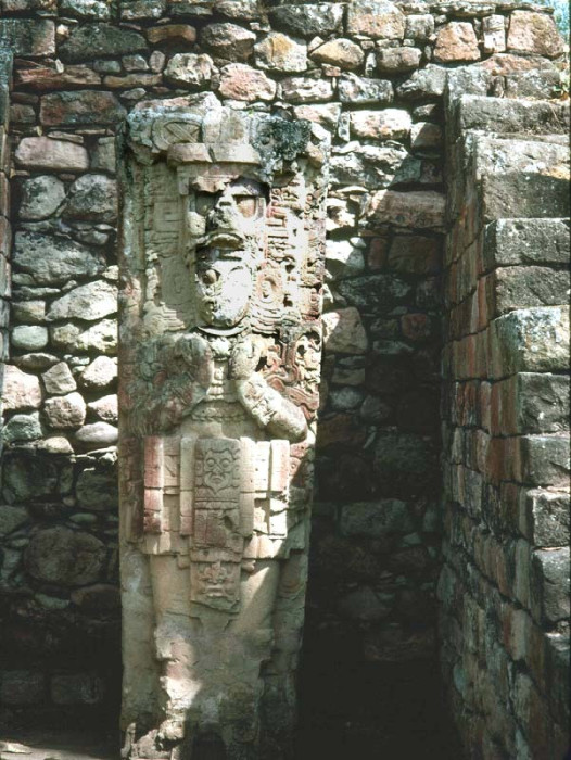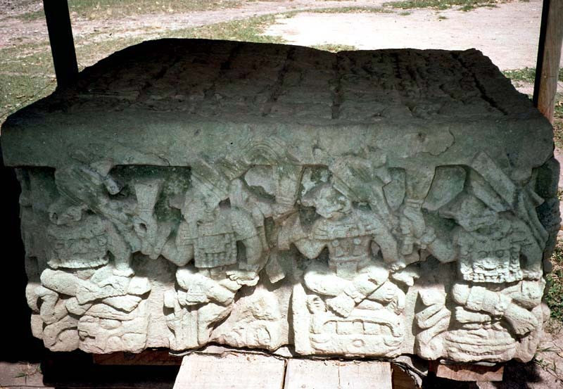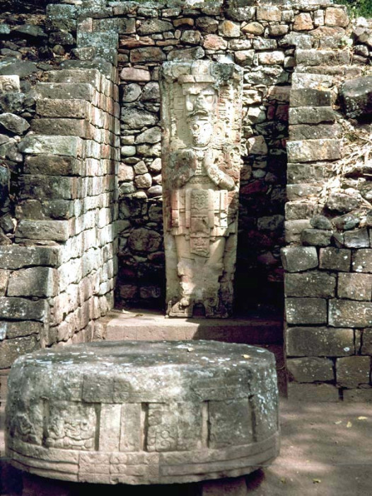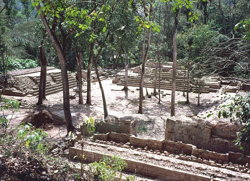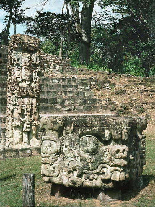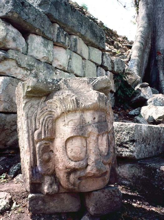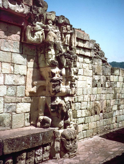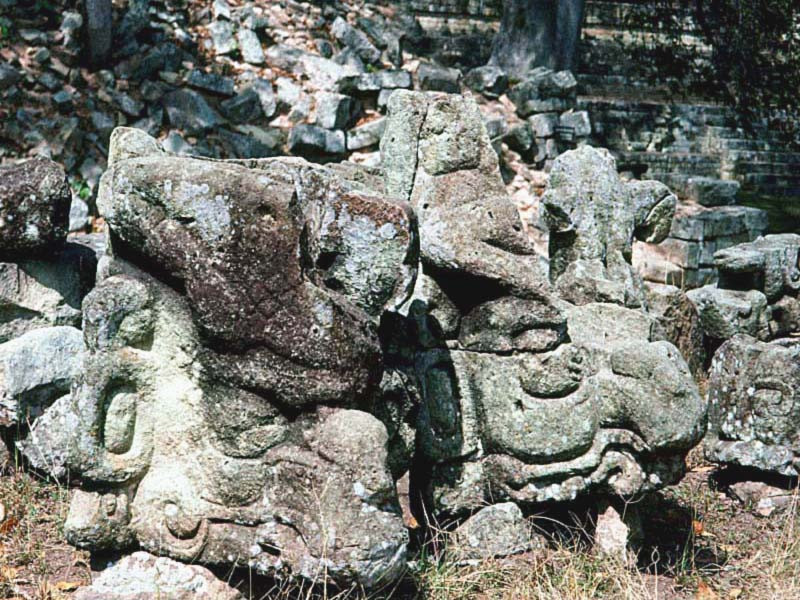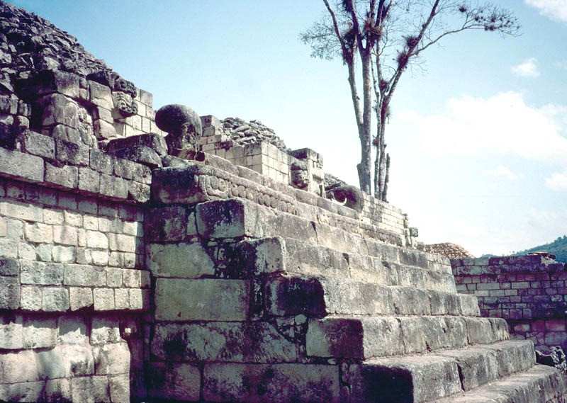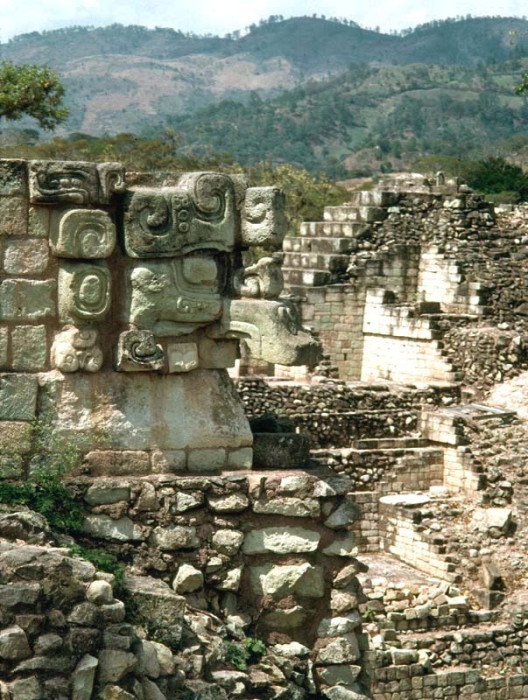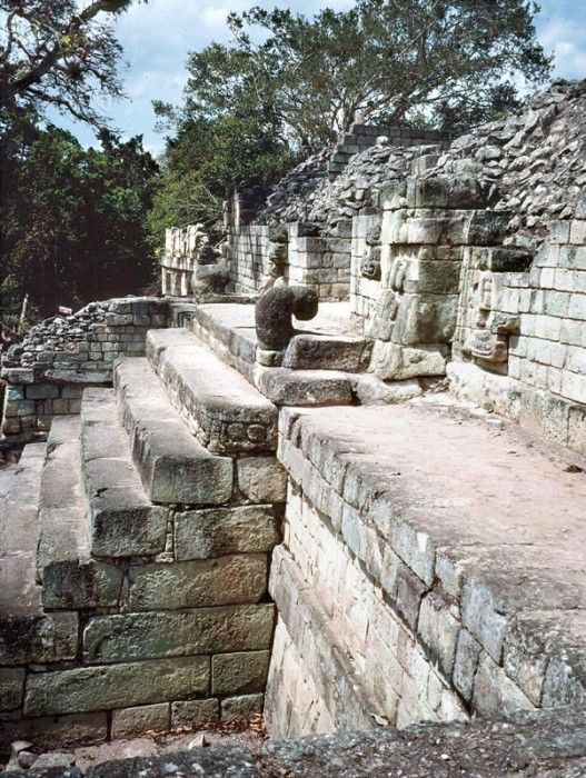 A significant portion of the eastern side of the acropolis was eroded away by the Copán River; the river has since been diverted to protect the site from further damage.