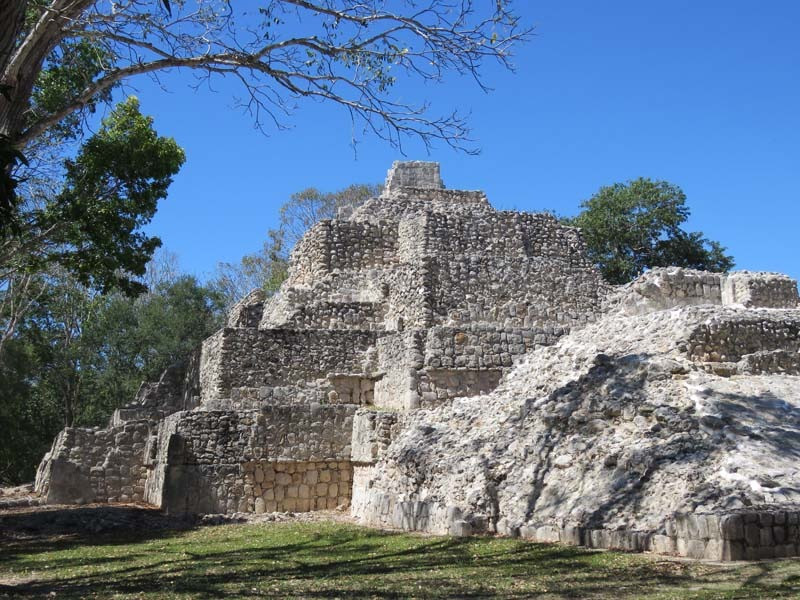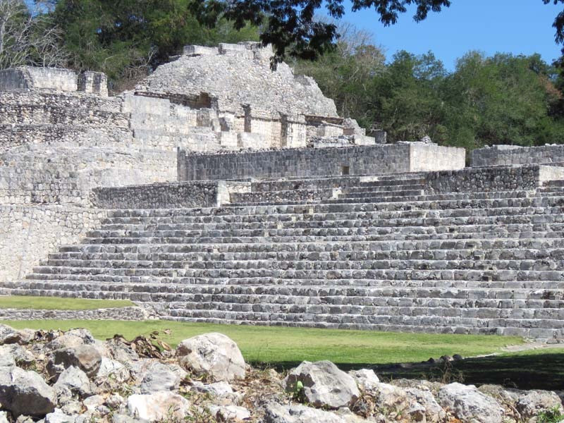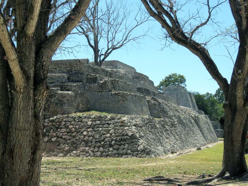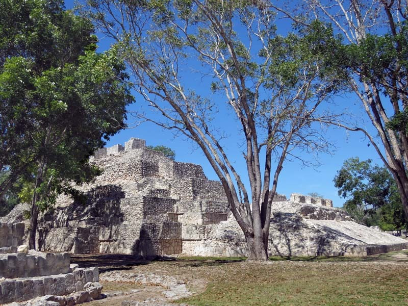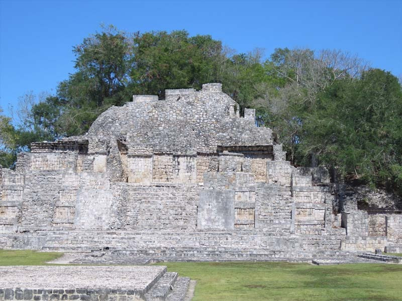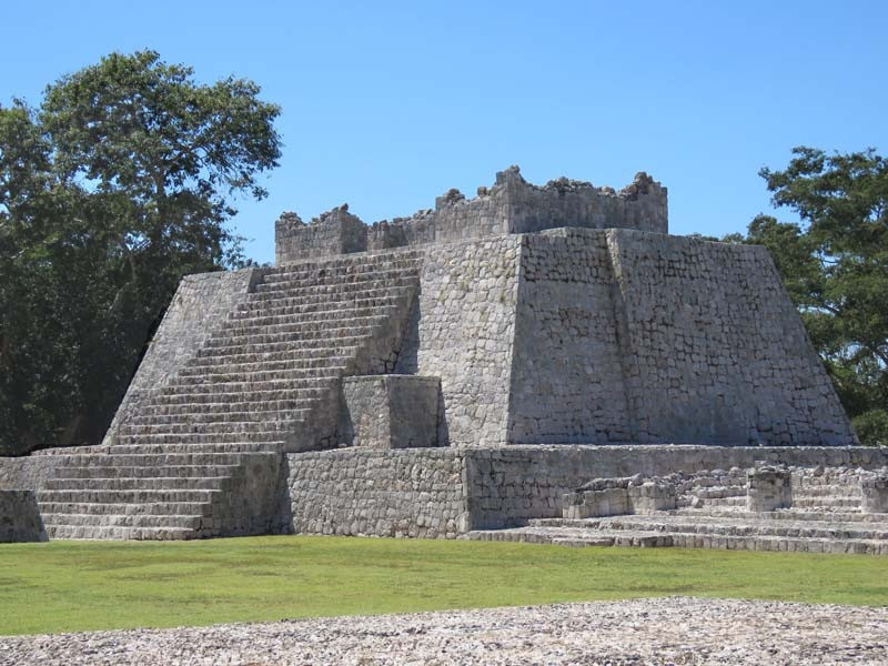 Edzna, stylistically and visually, is a very impressive Maya archaeological zone. Its highest pyramid can be seen well before one enters the zone. Its original name may have been Wakab’ Nal/Wak Pet Chaab’, "Land of the Seven Provinces/Sacred Lands." This influential political and economic regional capital was a mixture of several architectural styles spanning over 1500 years from 300 BC. to 1450 AD.