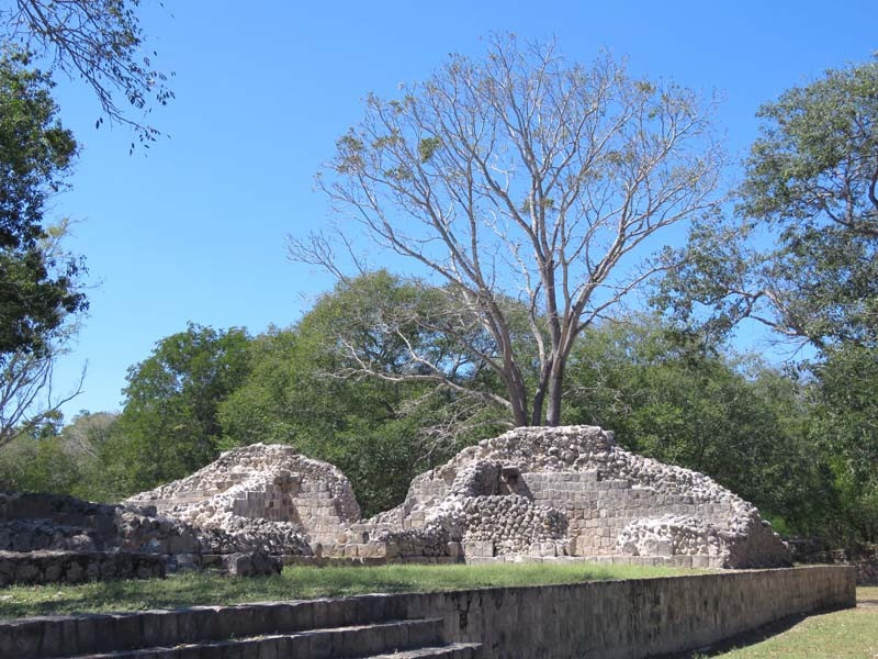 The most remarkable building at the site is the main temple located at the plaza. Built on a platform 40 meters high, it provides a wide overview of the surroundings. Another significant building located in the plaza is a ball court. Two parallel structures make up the ball court. The top rooms of the ball court were possibly used to store images of the gods associated with the events, along with items needed for the games.