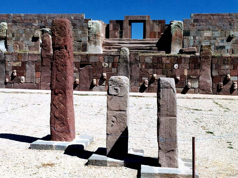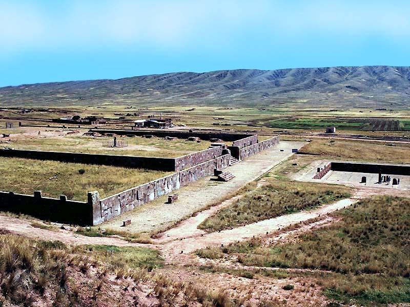 Tiwanaku is a ruined ancient city near Lake Titicaca in western Bolivia. Dominating the ruins, once the seat of the pre-Columbian Tiwanaku culture, are the Akapana pyramid and a semi-subterranean temple with carved images of human heads. Nearby Kalasasaya is an open temple with stone monoliths and the huge Gate of the Sun arch. The Museo del Sitio de Tiwanaku displays artifacts excavated from the site.