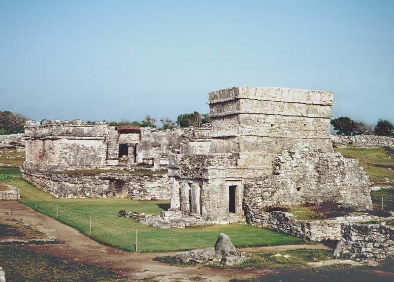 Tulum is the site of a pre-Columbian Mayan walled city that served as a major port for Coba, in the Mexican state of Quintana Roo. The ruins are situated on 12-meter (39 ft) tall cliffs along the east coast of the Yucatán Peninsula on the Caribbean Sea. Tulum was one of the last cities built and inhabited by the Maya; it was at its height between the 13th and 15th centuries and managed to survive about 70 years after the Spanish began occupying Mexico. By the end of the 16th century, the site was abandoned. One of the best-preserved coastal Maya sites, Tulum is today a popular site for tourists.