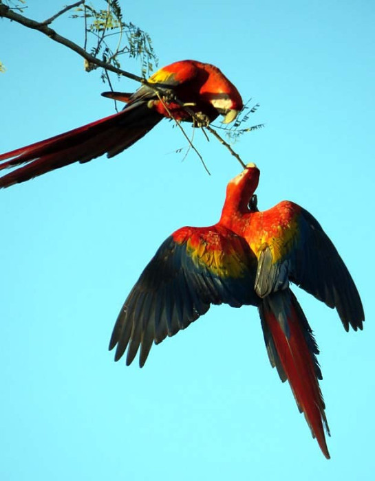 In some areas, it has suffered local extinction because of habitat destruction, or capture for the parrot trade, but in other areas, it remains fairly common. It is the national bird of Honduras. Like its relative the blue-and-yellow macaw, scarlet macaws are popular birds in aviculture as a result of their striking plumage.