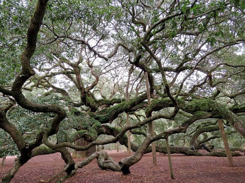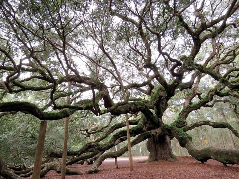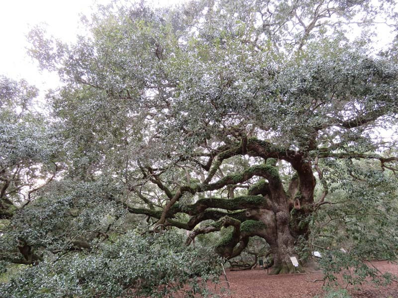 Angel Oak is a Southern live oak (Quercus virginiana) located in Angel Oak Park on Johns Island near Charleston, South Carolina. The tree is estimated to be 400–500 years old. It stands 66.5 ft tall, measures 28 ft in circumference, and produces shade that covers 17,200 square feet. Its longest branch distance is 187 ft. in length. Angel Oak was the 210th tree to be registered with the Live Oak Society.