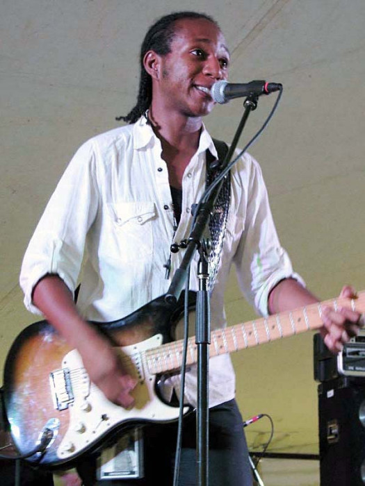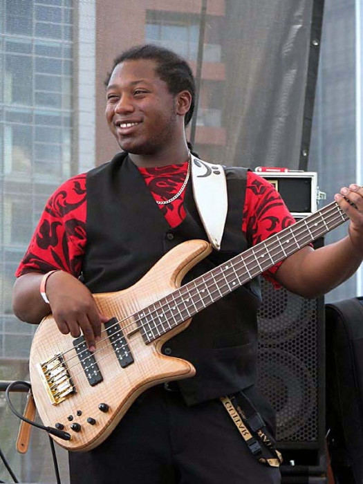 Alex, 16 years old, plays bass guitar, violin, and also sings. He brings the anchor and the feel to the group, often with a funk and jazz style.