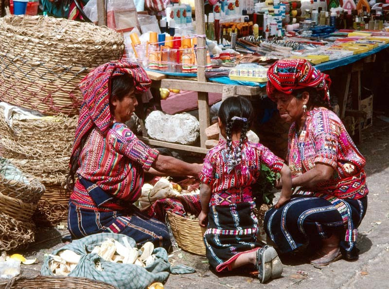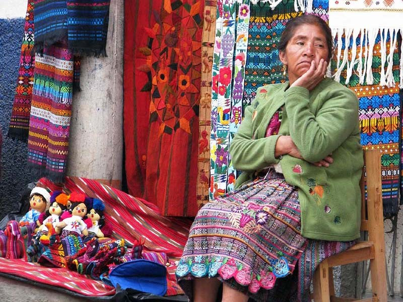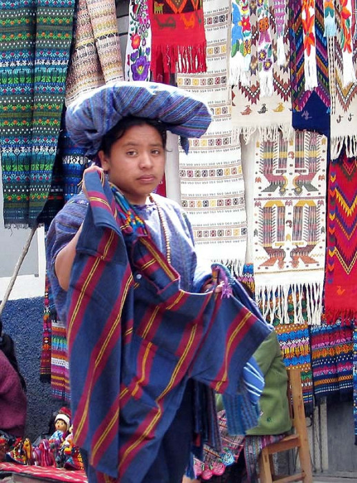 58 Woman offering textiles in the market place of Chichicastenango 800