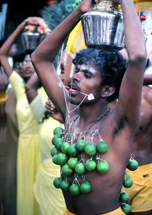 The Thaipusam ceremony has been banned in many countries with major Hindu populations, but still exists in a few places. I managed to come across this controversial ceremony in Singapore, just across the bridge from southern Malaysia.