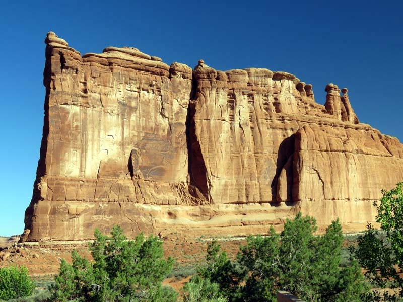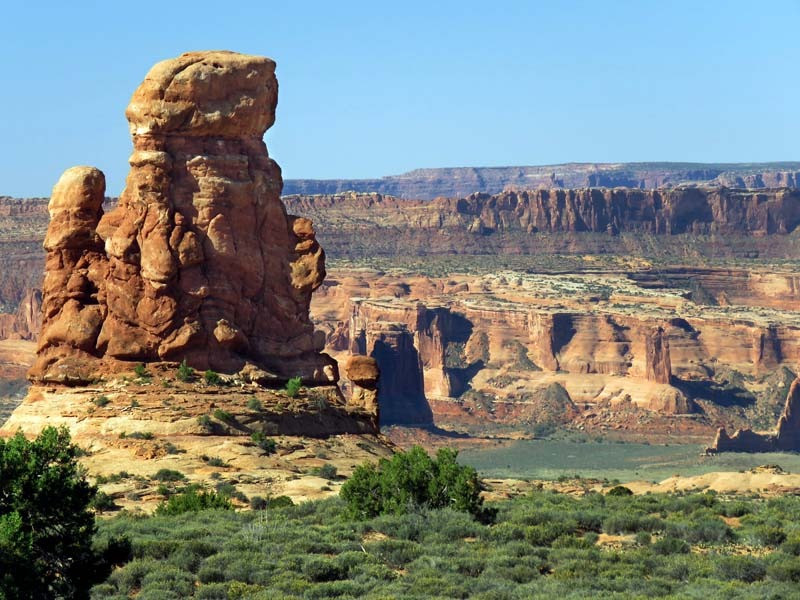 Arches National Park is a national park in eastern Utah, United States. The park is adjacent to the Colorado River, 4 miles north of Moab, Utah. More than 2,000 natural sandstone arches are located in the park, including the well-known Delicate Arch, as well as a variety of unique geological resources and formations. The park contains the highest density of natural arches in the world.