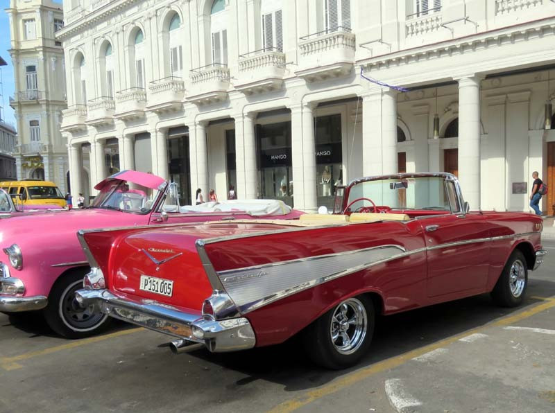 Locally restored 1957 Chevrolets on the streets of Cuba.
