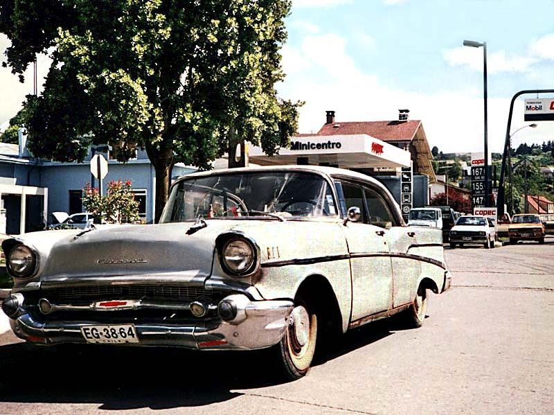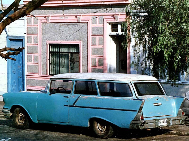 2 1957 Chevy in front of the Las Vegas Bar in Chile 800